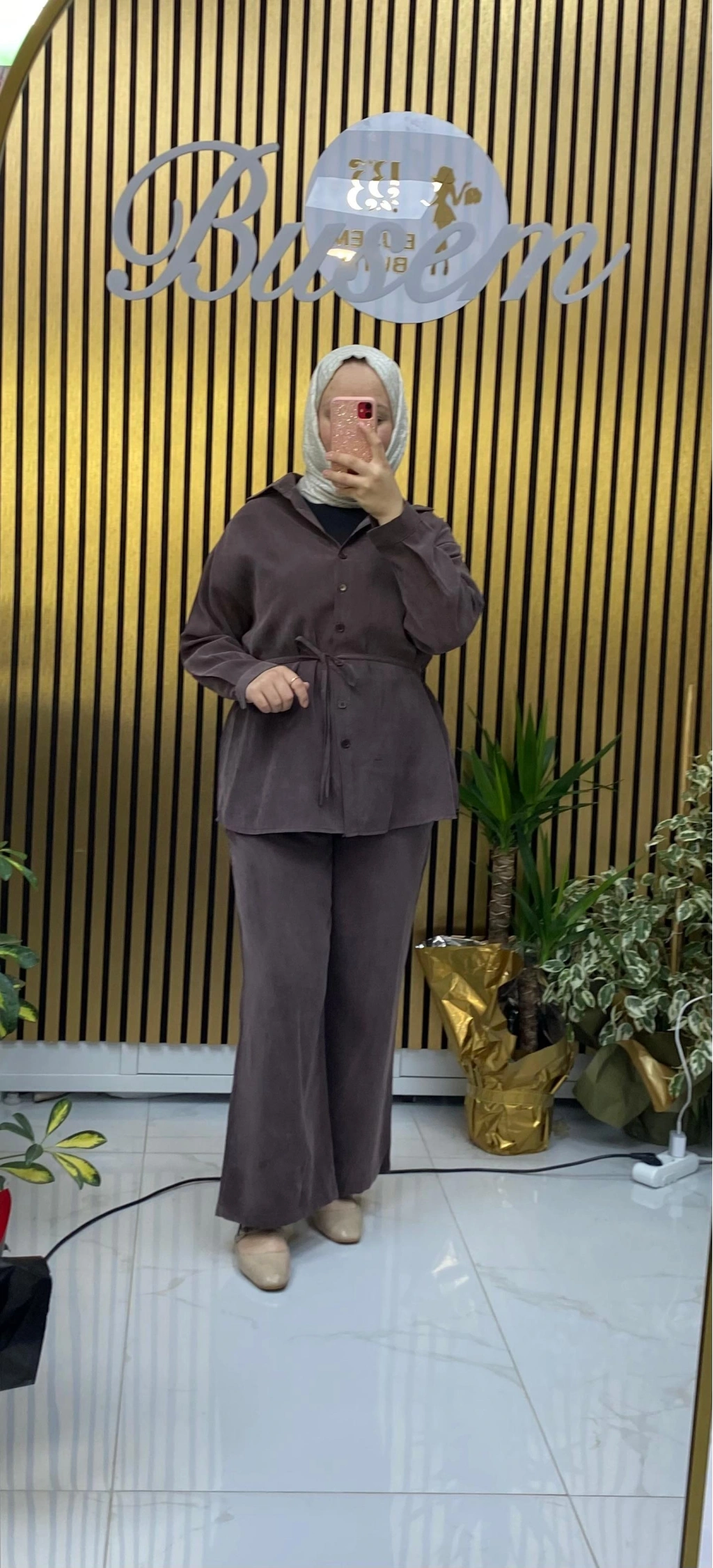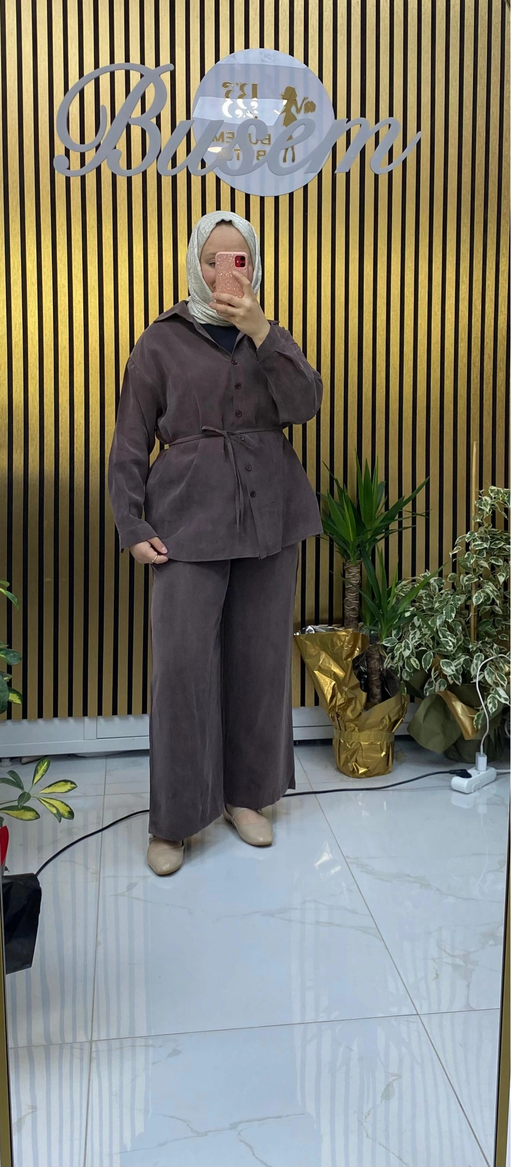 Desenli Kupra Takım Kahverengi