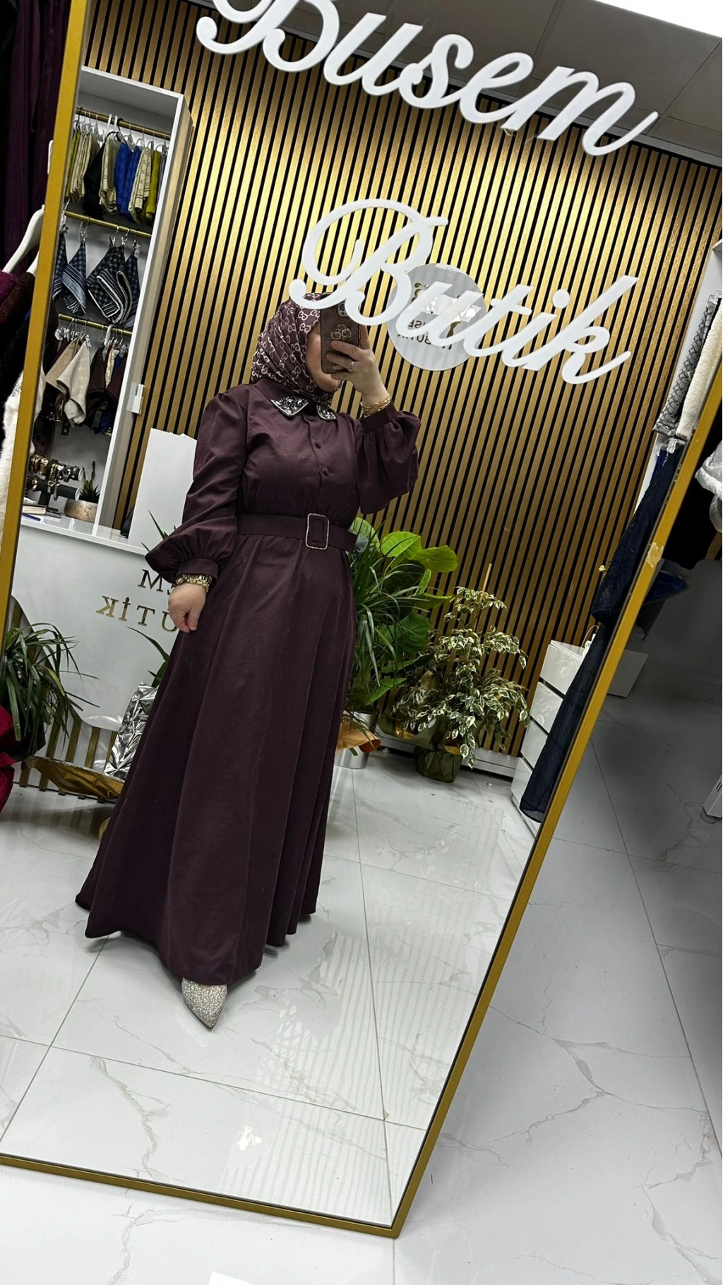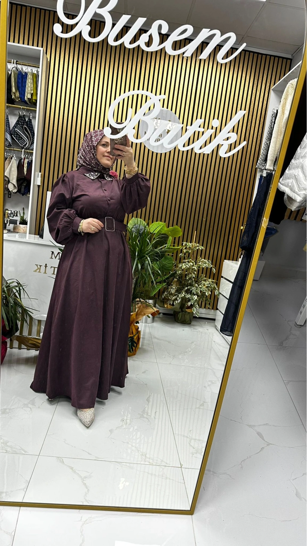 Mürdüm Elegan Luxe Kemer Detaylı Elbise